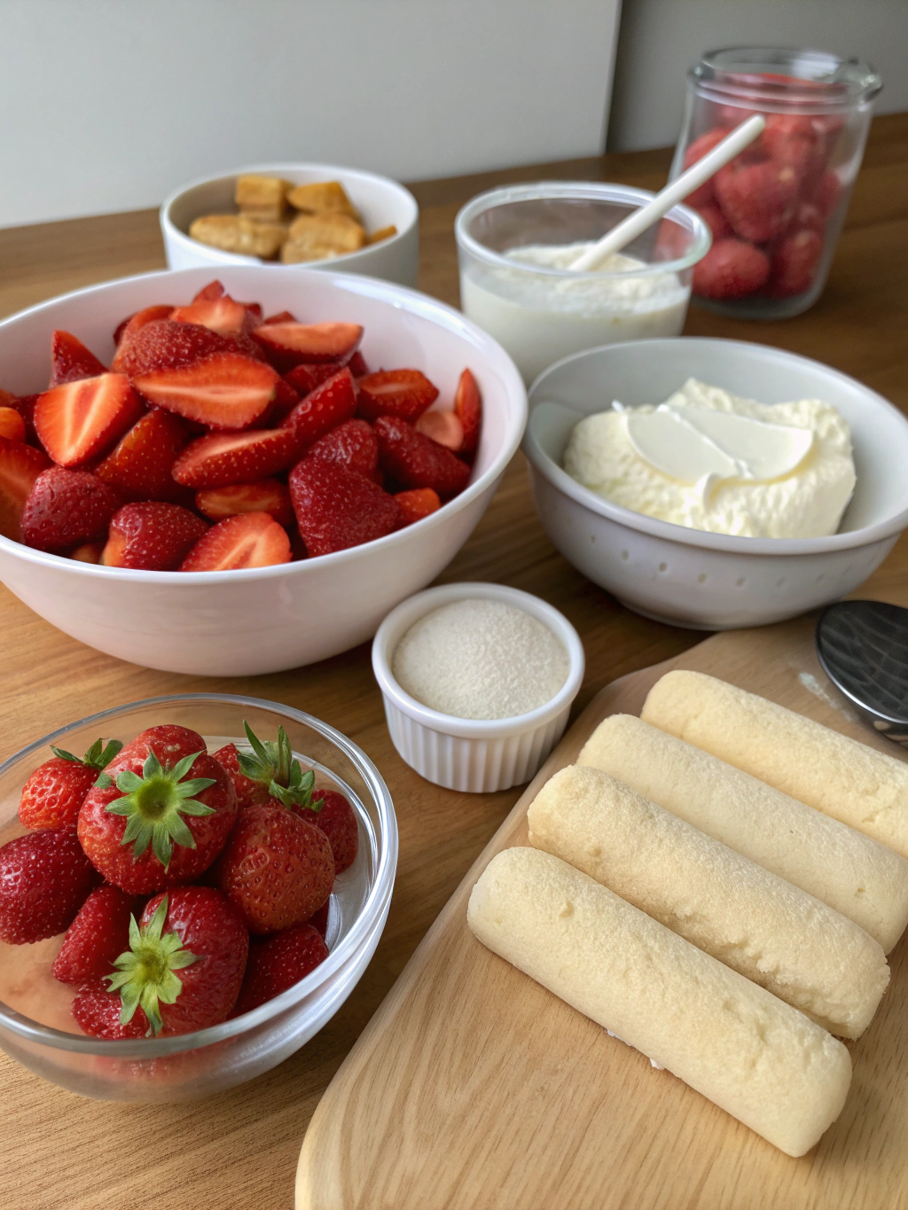 Goûte tes fraises avant de les intégrer. Si elles manquent de goût, saupoudre-les légèrement de sucre 30 minutes avant le montage.